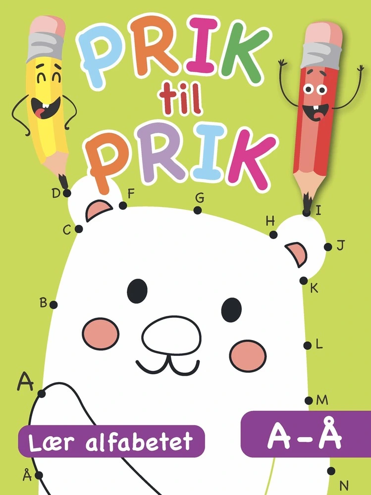Lær alfabetet på den sjove måde! I denne søde prik-til-prik-bog får barnet mulighed for at træne finmotorik og at lære alfabetet på en legende og kreativ måde. Tegn streger fra prik til prik ved at følge bogstaverne A til Å og se de søde dyr og flotte køretøjer dukke op, som bagefter kan farvelægges. Nederst på siderne står hele alfabetet som hjælp. NB: Se også bogen den anden bog i serien: Prik-til-prik: Lær tallene 1-10